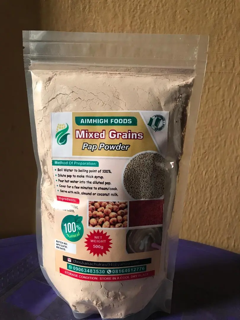 Experience the richness of AimHigh Mixed Grains Pap Powder – Tiger Nut, Millet & Guinea Corn. Specially crafted for maximum nutrition, this pap combines the sweetness of tiger nuts, the fiber of millet, and the energy-boosting properties of guinea corn.